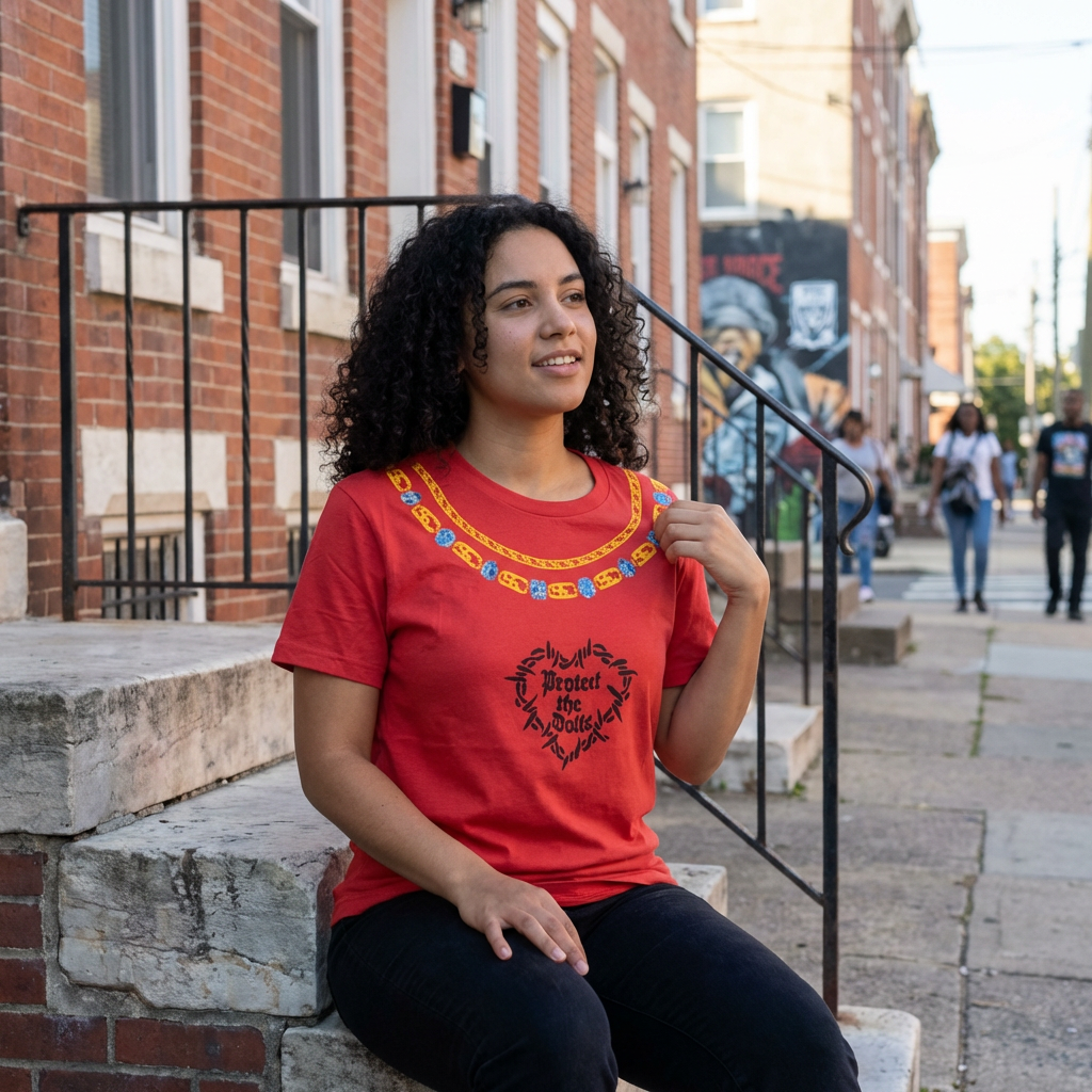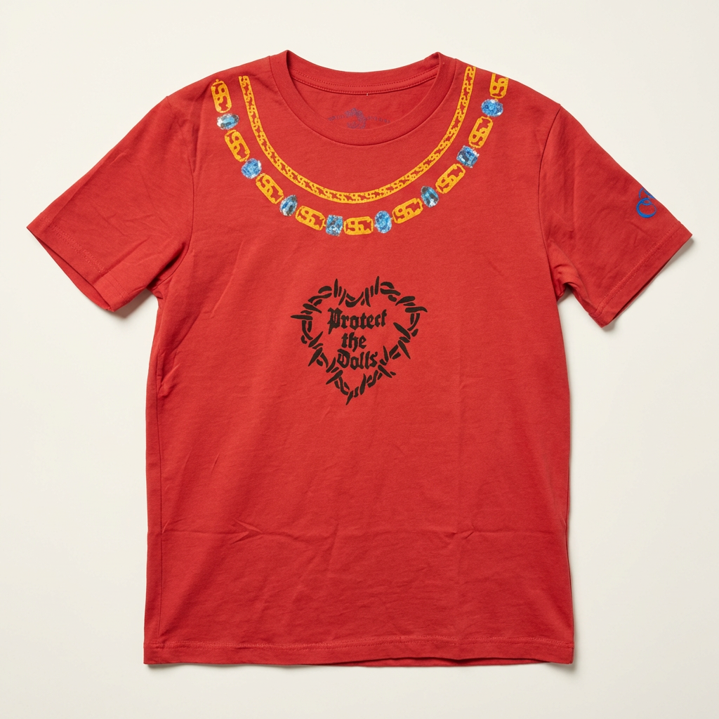 Sapphira Cristál merch chain shirt with screen printed “Protect the Dolls”